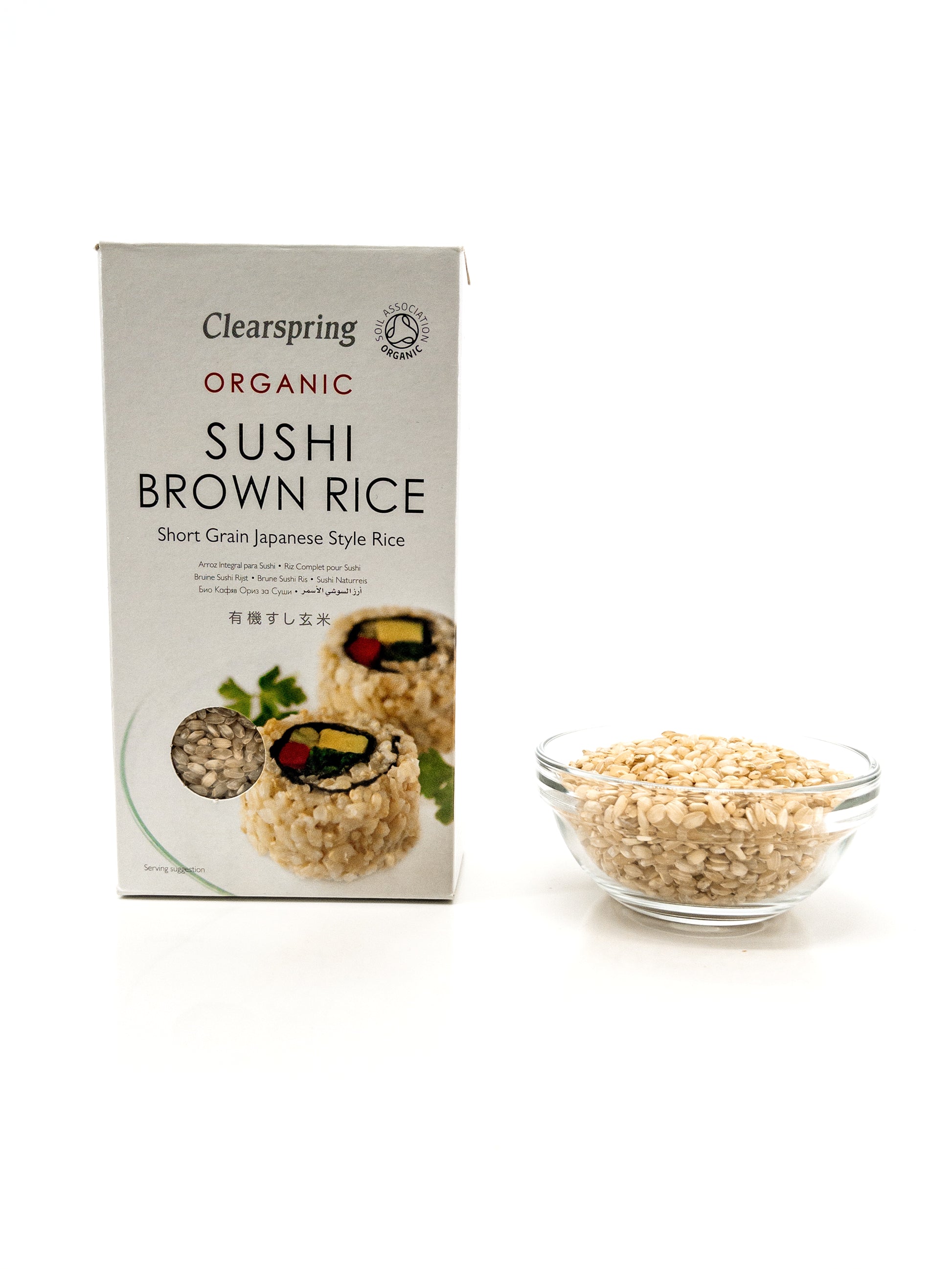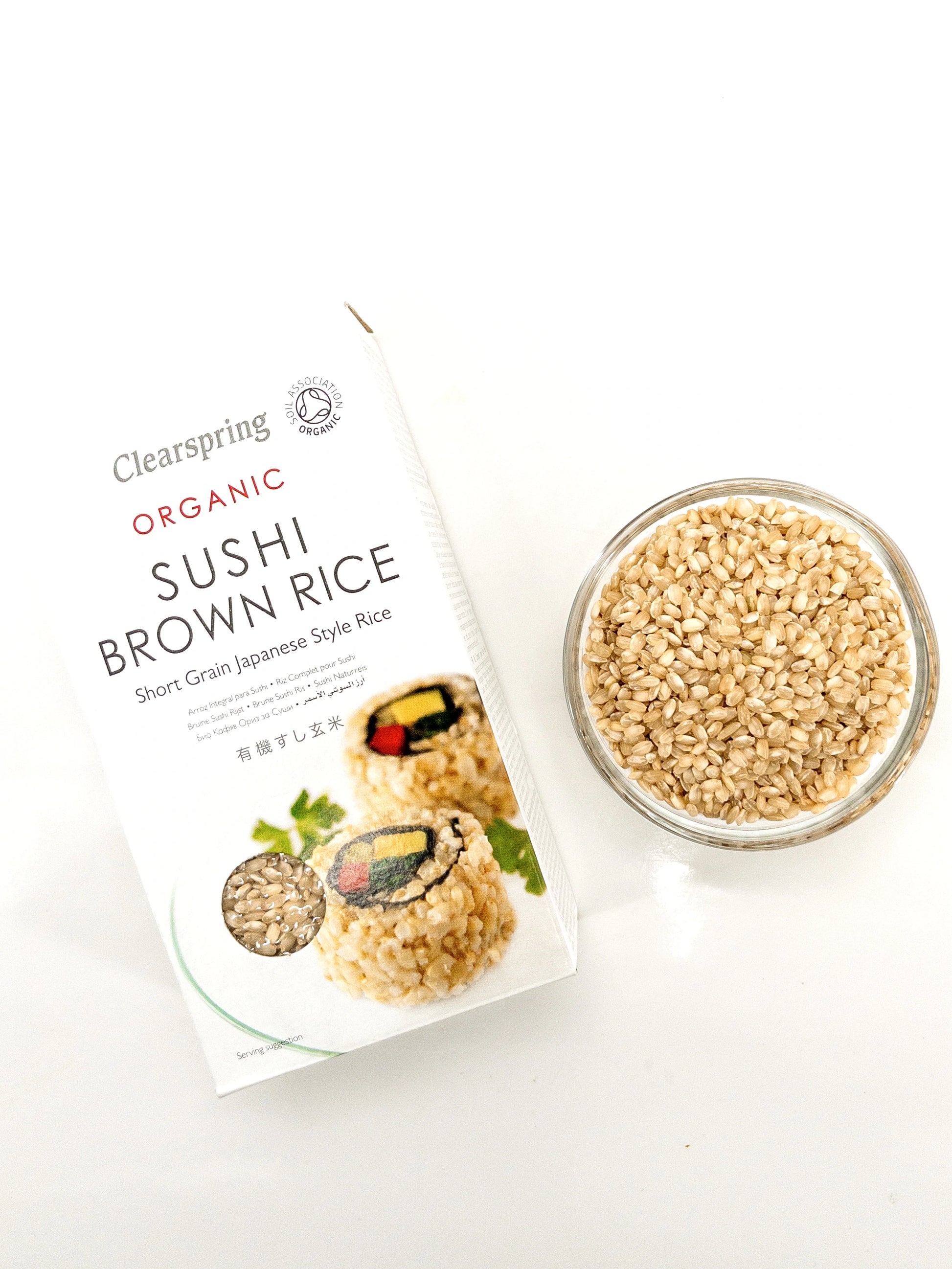 Biologische bruine rijst voor sushi - 500 g - ClearspringBiologische volkoren sushirijst – 500 g – Clearspring